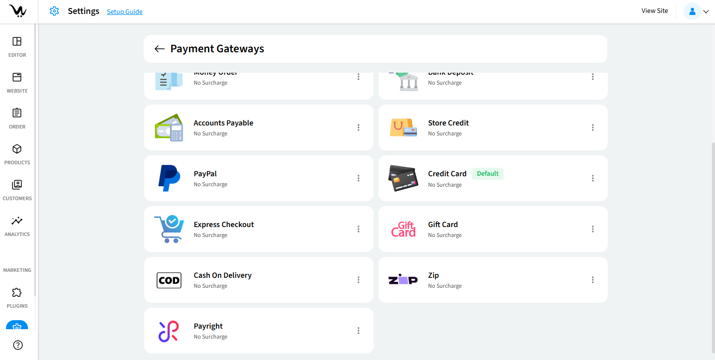 - Make default gateway: allows you to set it as the default payment option. All payments will default to the method unless changed.