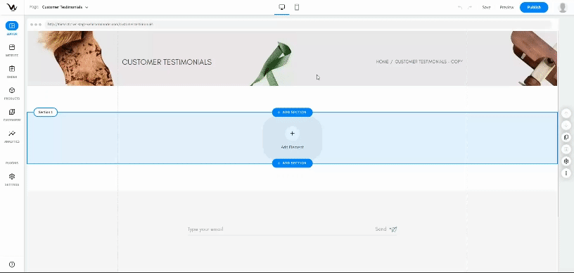 - Within the popup, click on “+ Blank Section.” This will take you to choose the section layout.